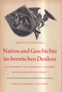 Greyerz, Hans von: Nation und Geschichte im bernischen Denken. vom Beitrag Berns zum schweizerischen Geschichts- und Nationalbewußtsein. Bern: Lang 1953. 8°. 332 S. Leinen (Schutzumschlag leicht angestaubt; gut erhalten)