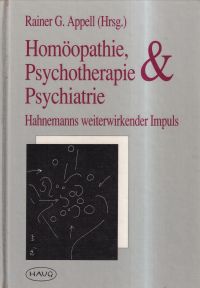 Appell, Rainer G.: Homöopathie, Psychotherapie & Psychiatrie. Hahnemanns weiterwirkender Impuls. Heidelberg: Haug 1993. 8°. 231 S., 31 Abbildungen Pappband (Besitzervermerk auf Vorsatz; Fussschnitt leicht befleckt; gut erhalten)