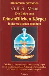 Mead, Georg Robert Stow: Die Lehre vom feinstofflichen Körper in der westlichen Tradition. Geistkörper, Strahlenkörper, Auferstehungkörper, in der Erfahrungswelt der Pythagoräer, Neuplatoniker, Gnostiker und Hermetischen Philosophen. Interlaken: Ansata 1991. 8°. 151 S., Leinen (Schutzumschlag leicht berieben; Papierbedingt leicht gebräunt; gut erhalten) (=Bibliotheca Hermetica).
