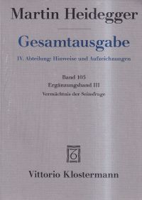 Heidegger, Martin: Vermächtnis der Seinsfrage. Frankfurt/Main: Vittorio Klostermann 2025. 8°. XXVII, 425 S., Kartoniert (sehr gut erhalten) (=Gesamtausgabe; 4. Abteilung, Hinweise und Aufzeichnungen, Band 105 = Ergänzungsband 3)