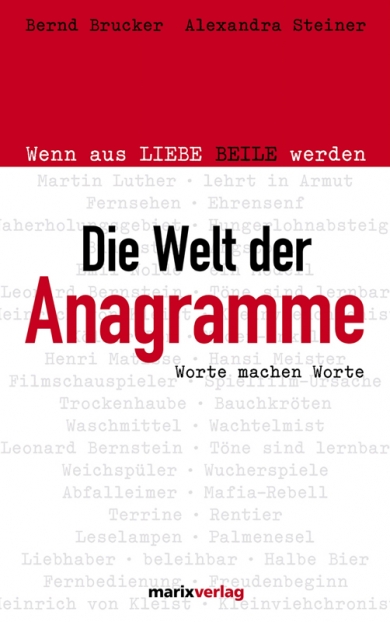 Brucker, Bernd/Steiner, Alexandra: Die Welt der Anagramme. Wenn aus LIEBE BEILE werden Wiesbaden: Marix 2008. 8°. 192 S., Pappband (gut erhalten) Die Welt ist eine Welt der Begriffe, und sie wäre eine andere, wenn wir sie mit anderen Augen betrachteten. Der Anagrammatiker nimmt sich diese Weisheit zu Herzen, und um herausfinden, wie sie aussehen könnte, arrangiert er sie einfach ein bisschen anders. Neben einer ganzen Reihe erstaunlicher und heiterer Erkenntnisse finden Sie in diesem Buch auch noch wertvolle Hintergrundinformationen und Tipps.