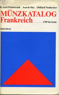 Poindessault, Bernard/Mey, Jean de: Münzkatalog Frankreich von 1793 bis heute. Übersetzung nach der 3. erweiterten und revidierten Aufl. 1976. München: Battenberg 1978. 8°. 464 S., zahlreiche Abbildungen, Leinen (Bibliotheksexemplar; Schutzumschlag mit Randläsuren und Fehlstellen; Stempel auf Vorsatz; sonst gut erhalten)