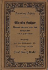 Berlit, Georg: Martin Luther. Thomas Murner und das Kirchenlied des 16. Jahrhunderts. Leipzig: Göschen 1900. Kl.-8°. 160 S. Leinen (gut erhalten) (Sammlung Göschen, Bd. 7)