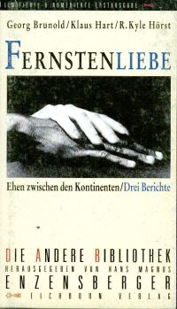 Brunold, Georg/Hart, Klaus/Hörst, R. Kyle: Fernstenliebe. Ehe zwischen den Kontinenten. Drei Berichte. Limitierte Erstausgabe, 1. – 7. Tsd. Frankfurt/Main: Eichborn 1999. 8°. 311 S. Pappband (Mängelstempel auf Buchblock; Einbandhülle berieben; sonst gut erhalten) (=Die andere Bibliothek; 172) Wunderbare und leidenschaftliche Liebesgeschichten, die im wahrsten Sinne Grenzen überwinden. Es geht um Glücksverheissungen, Ambivalenzen, Fluchtversuche, um Entdeckungsreisen ins Innere, um Verstrickungen, Gefahren und Erlösungen…