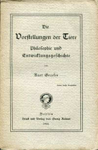 Graeser, Kurt: Die Vorstellungen der Tiere. Philosophie und Entwicklungsgeschichte. Berlin: Georg Reimer 1906. 8°. 184 S., broschiert (Seiten nicht beschnitten; altersgemäss gut erhalten)