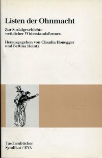 Honnegger, Claudia (Hrsg.): Listen der Ohnmacht. Zur Sozialgeschichte weiblicher Widerstandsformen. Gekürzte und überarbeitete Taschenbuchausgabe. Frankfurt/Main: Europäische Verlagsanstalt 1984. 8°. 336 S., sw-Abbildungen, broschiert (Papier gebräunt; sonst gut erhalten) (=Taschenbücher-Syndikat EVA ; Bd. 38)