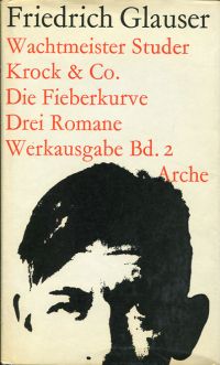 Glauser, Friedrich: Wachtmeister Studer. Krock & Co. Die Fieberkurve. Drei Romane. Zürich: Verlag der Arche 1969. 8°. 506 S., Leinen (Schutzumschlag angebräunt und berieben; sonst gut erhalten) (=Werkausgabe; 2)