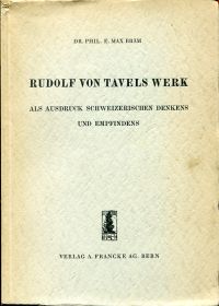 Bräm, Emil Max: Rudolf von Tavels Werk als Ausdruck schweizerischen Denkens und Empfindens. Eine Einführung in Tavels Gedankenwelt. Bern: Francke 1944. 8°. 110 S., broschiert (Kanten leicht bestossen; Einband wenig angebräunt und wenig befleckt; sonst gut erhalten)