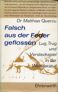 Quercu, Matthias: Falsch aus der Feder geflossen. Lug, Trug und Versteckspiel in der Weltliteratur. München: Ehrenwirth 1964. 8°. 282 S., sw-Abbildungen und Illustrationen, Leinen (SU teilweise abgeblasst; gut erhalten) (=Das moderne Sachbuch ; Bd. 26)