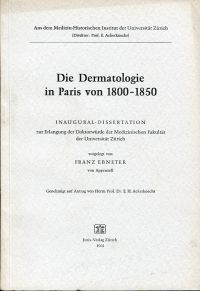 Ebneter, Franz: Die Dermatologie in Paris von 1800-1850. Zürich: Juris 1964. 8°. 46 S., broschiert (Einband mit leichten Gebrauchsspuren; sonst gut erhalten) (=Dissertation Zürich 1964)