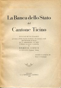 Conti, Enrico: La Banco dello Stato del Cantone Ticino. Lugano: S.A. Tipografia Editrice 1936. 8°. 183 S., Tabellen, broschiert (gebräunt; Rücken oben und unten leicht bestossen; erste Seiten mit kleinem an Ecke unten) (=Dissertazione Zürich 1936)