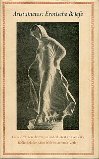 Aristaenetus: Erotische Briefe. Eingeleitet, neu übertragen und erläutert von Albin Lesky. Zürich: Artemis 1951. Kl.-8°. 191 S., Leinen mit Kopffarbschnitt (Schutzumschlag mit leichten Randläsuren und leicht angestaubt; gut erhalten) (=Die Bibliothek der Alten Welt : Griechische Reihe)