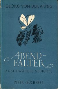 Vring, Georg von der: Abendfalter. Ausgewählte Gedichte. München: Piper 1952. 8°. 62 S., Pappband (Kanten beschabt; Kapital oben in den Scharnieren eingerissen; Papier leicht gebräunt) (=Piper-Bücherei ; Bd. 54)