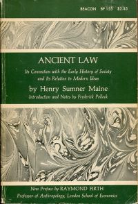 Maine, Henry Summer: Ancient Law. Its connection with the early history of society and its relation to modern ideas. Introduction and Notes by Frederick Pollock. Preface to the Beacon Paperback edtion by Raymond Firth. – First published 1861. Boston: Beacon Press 1963. 8°. XXXI, 462 S., broschiert (Besitzervermerk auf Titelblatt; Einband leicht berieben und leichten Gebrauchsspuren; Papier leicht gebräunt; sonst gut erhalten) (=Beacon Series in Classics of the Law).