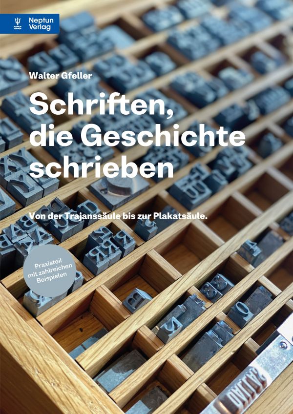 Gfeller, Walter: Schriften, die Geschichte schrieben. Von der Trajanssäule bis zur Plakatsäule. 1. Auflage. Bern: Neptun 2023. ca. X, 750 S., 563 Tafeln mit zahlreichen Schriftbeispielen, Hardcover mit Schutzumschlag Die unglaubliche Vielfalt an Schrifttypen, die heutzutage im Umlauf sind, steht in seltsamem Gegensatz zu deren Herkunft. Sie sind einfach da, bequem für den Privatgebrauch ebenso wie für die professionellen Anwender. Herkunft? – Das Buch geht der Geschichte der Druckschriften nach, und diese Geschichte beginnt mit dem ersten Höhepunkt der abendländischen Schriftentwicklung: den majestätischen Buchstaben der Trajanssäule in Rom. Die Trajansbuchstaben ändern durch die Jahrhunderte ihre Gestalt, und die Wasserscheide der Alpen wird auch zur Abgrenzung zweier Schreibkulturen: der «lateinischen» Schrift in Italien und der «gotischen» oder gebrochenen Buchstaben nördlich der Alpen. Beide Kulturen werden in diesem Buch akribisch von ihren Anfängen her geschildert, was zur Folge hat, daß die Antiqua, die große Gruppe unserer heutigen Schriften, in einem Zug von der Trajanssäule bis zu den Autobahn- und Ortstafeln mit Frutigers Schriften verfolgt werden kann. Eine umfassende Vorstellung der gebrochenen Schriften ist dank deren digitaler Erfassung an Akribie der Antiqua ebenbürtig, was bis jetzt noch in keiner Untersuchung erfaßt wurde. Gerade dadurch ist dieses Buch ein Pionier, ein einzigartiger Kunstführer: Es vermittelt Wissen, das über den ganzen deutschen Kulturraum verteilt ist.