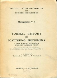 Grosjean, Carl C.: Formal Theory of Scattering Phenomena. A study of recent achievements in modern scattering theory. Bruxelles: Institut Interuniversitaire des Scienes nucléaires (1960?) 8°. 279 S., broschiert (Einband teilweise vom Buchblock gelöst; Bibliotheksexemplar; Stempel auf Einband und Titelblatt, Einband angebräunt und leichte Randläsuren)