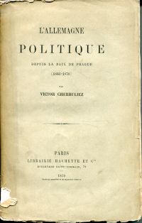 ![]() Cherbuliez, L’Allemagne politique depuis la Paix de Prague, 1866-1870. (Umschlag) |