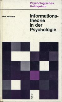 Attneave, Fred: Informationstheorie in der Psychologie. Grundbegriffe, Techniken, Ergebnisse. Bern/Stuttgart: Huber 1965. 8°. 160 S., lam. Pappband (Papier leicht gebräunt; Einband leicht angestaubt; Kapital leicht bestossen; sonst gut erhalten) (=Psychologisches Kolloquium ; Bd. 2)