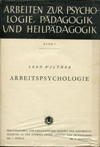 Walther, Léon: Arbeitspsychologie. Technopsychologie der industriellen Arbeit. Luzern: Caritas-Verlag 1950. Gr.-8°. X, 247 S., sw-Abbildungen, graph. Darstellungen, Bibliographie, engl. broschiert Papier gebräunt; Einband von Buchblock gelöst) (=Arbeiten zur Psychologie, Pädagogik und Heilpädagogik ; Bd. 3)