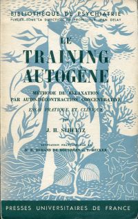Schultz, J.H.: Le training autogène. Méthode de relaxation par auto-décontraction concentrative. Essai pratique et clinique. De plus: „Manuel pratique du training autogène“. Français par R. Durand de Bousingen et Y. Becker. Paris: Presses Universitaires de France 1958. Gr.-8°. VI, 191 S. broschiert (Umschlag leicht angestaubt; sonst gut erhalten) (=Bibliothèque de psychiatrie).