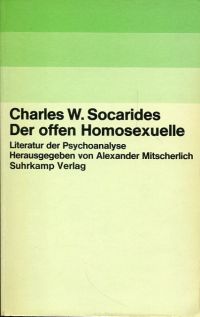Socarides, Charles W.: Der offen Homosexuelle. Frankfurt a.M.: Suhrkamp 1971. Kl.-8°. 367 S. broschiert (teilweise Anstreichungen) (=Literatur der Psychoanalyse, hrsg. von Alexander Mitscherlich)