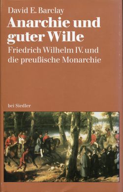 Preussen – Barclay, David E.: Anarchie und guter Wille. Friedrich Wilhelm IV. und die preussische Monarchie. Berlin: Siedler 1995. 8°. 535 S., sw-Abbildungen, Anmerkungen, Bibliographie, Register, Leinen (M) (Mängelstempel auf Buchblock; Schutzumschlag leicht berieben; sonst gut erhalten)