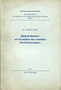Boos, Roman: Rudolf Steiner als Gestalter des sozialen Freiheitsraumes. Bern: Troxler 1945. 8°. 87 S., broschiert (Umschlag leicht angestaubt; sonst gut erhalten) (=Zur Soziologie der Freiheit, 2)