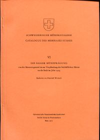 Wielandt, Friedrich (Hrsg.): Die Basler Münzprägung von der Merowingerzeit bis zur Verpfändung der bischöflichen Münze an die Stadt im Jahr 1373. Bern: Schweizerische Numismatische Gesellschaft 1971. Gr.-8°. 88 Textseiten, 130 Münzenphotographien auf 7 Tafeln, broschiert (gut erhalten) (=Schweizerische Münzkataloge, Bd. 6).