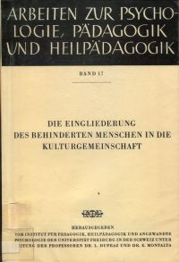 Die Eingliederung des behinderten Menschen in die Kulturgemeinschaft. Vorträge des XXII. pädagogischen Ferienkurses der Univerität Freiburg. Fribourg: Universitätsverlag 1959. Gr.-8°. 306 S. Brosch. (Bibliotheksexemplar; Stempel auf Vorsatz und Titelblatt; Bibliothekskleber auf Vorsatz) (=Arbeiten zur Psychologie, Pädagogik und Heilpädagogik, Bd. 17).
