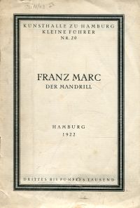 Pauli, Gustav: Franz Marc. Der Mandrill. 3.-5. Tsd. Hamburg: Kunsthalle 1922. Kl.-8°. 10 S., mit 3 montierten Abbildungen, davon 1 in Farbe, geheftet (mit Gebrauchsspuren; angestaubt; wenig abegeriffen und leicht stockfleckig) (=Kunsthalle zu Hamburg ; Nr 20)