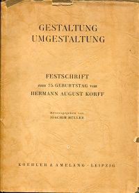 Müller, Joachim (Hrsg.): Gestaltung, Umgestaltung. Festschrift zum 75. Geburtstag von Hermann August Korff. Leipzig: Koehler & Amelang 1957. Gr.-8°. 291 S., 1 Titelbild, Leinen (Schutzumschlag mit Randläsuren und kleinen Fehlstellen ohne Textverlust; sonst gut erhalten)