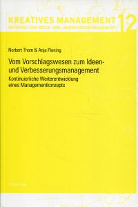 Thom, Norbert/Piening, Anja: Vom Vorschlagswesen zum Ideen- und Verbesserungsmanagement. Kontinuierliche Weiterentwicklung eines Managementkonzepts. Bern u.a.: Lang 2009. 8°. XXII, 237 S., broschiert (gut erhalten) (=Kreatives Management ; Bd. 12)