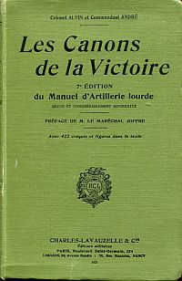 Alvin, Pierre: Les Canons de la victoire. 7e édition du Manuel d’artillerie lourde, revue et considérablement augmentée. Préface de M. le maréchal Joffre. Limoges/Paris: Charles-Lavauzelle 1923. Gr.-8°. IX, 572 S., Aaec 422 croquis et figures dans le texte kartoniertes Leinen und umlaufendem Rotschnitt (Papier altersbedingt leicht gebräunt; ; altersgemäss gut erhalten)