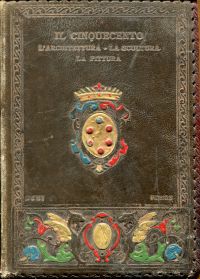 Becherucci, Luisa: L’architettura italiana del Cinquecento. Angebunden: Becherruchi, Lisa: La Scultura Italiana del Cinquecento – Pittaluga, Mary: La pittura italiana del Cinquecento (2 Teile). Firenze, Novissima enciclopedia monografica illustrata, 1944. 8°. Insgesamt 256 S., zahlreiche sw-Abbildungen, kolorierter Ledereinband Stempel auf Vorsatz und Titelblatt; Einband berieben; Rücken abgeblasst; Buchblock geknickt) (=Novissima enciclopedia monografica illustrata)
