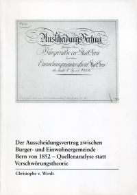 Werdt, Christophe von: Der Ausscheidungsvertrag zwischen Burger- und Einwohnergemeinde Bern von 1852 – Quellenanalyse statt Verschwörungstheorie. Sonderdruck. Bern: Rub Media 2009. 8°. 97 S., broschiert (gut erhalten) (=Aus: Berner Zeitschrift für Geschichte ; 3. 2009)