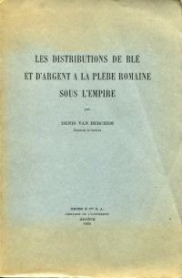 Berchem, Denis van: Les distributions de blé et d’argent à la plèbe romaine sous l’empire. Genève: Georg 1939. Gr.-8°. 185 S., broschiert (Besitzervermerk auf Vorsatz; Umschlag teilweise abgebräunt; altersgemäss gut erhalten)