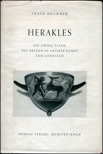 Brommer, Frank: Herakles. Die 12 Taten des Helden in antiker Kunst u. Literatur. Münster/Köln: Böhlau 1953. 8°. 103 S., 11 Abbildungen im Text u. 32 Tafeln, 1 Titelvignette. broschiert (Schutzumschlag mit leichten Randläsuren; sonst gut erhalten)