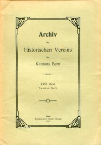 ![]() Archiv des Historischen Vereins des Kantons Bern, 26. Band, Heft 2 (1922). (Umschlag) |