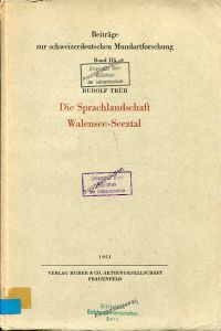 Trüb, Rudolf: Die Sprachlandschaft Walensee-Seeztal. Ein Beitrag zur Sprach- u. Kulturgeographie der Ostschweiz. Frauenfeld: Huber 1951. Gr.-8°. XXXI, 288 S., 7 Ktn. in Rückenschlaufe, [Mit 2 Tab. im Text, 1 Reliefkt. u. 7 sprachgeograph. Ktn.]. broschiert (Bibliotheksexemplar; Stempel auf Umschlag, Vorsatz und Titelblatt; Bibliotheksvermerke; sonst gut erhalten) (=Beiträge zur schweizerdeutschen Mundartforschung ; Bd. 3)