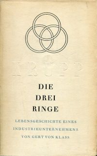 Klaß, Gert von: Die drei Ringe. Lebensgeschichte eines Industrieunternehmens [Krupp]. Tübingen/Stuttgart: R. Wunderlich 1953. 8°. 478 S., 20 Tafeln, Leinen (leicht lichtrandig; gut erhalten)