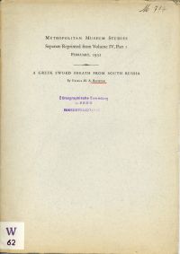 Richter, Gisela Marie Augusta: A Greek sword sheath from South Russia. Separate reprint. New York, NY: Metropolitan Museum of Art 1932. 4°. S. 109 – 130, 29 sw-Abbildungen, broschiert (Bibliotheksexemplar; Bibliotheksvermerke; Einband mit leichten Gebrauchsspuren; altersgemäss gut erhalten) (=Aus: Metropolitan Museum Studies, Vol. IV, Part I, February 1932)