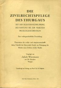 Wiesmann, Jakob: Die Zivilrechtspflege des Thurgaus. Seit der Selbständigkeitserklärung bis zur neuesten Prozessgesetzrevision ; Eine rechtsgeschichtliche Darstellung. Meilen: Ebner 1927. 8°. 238 S., broschiert (Einband angestaubt; altersgemäss gut erhalten) (=Dissertation Zürich 1927)
