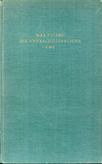 Picard, Max: Die unerschütterliche Ehe. Erlenbach-Zürich: Rentsch 1942. gr. 8. 263 S. Leinen (Besitzervermerk auf Vorsatz; Einband leicht verzogen; Papier altersbedingt leicht gebräunt; sonst altersgemäss gut erhalten)