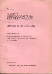 Kohen-Raz, Reuven: Some additional clinical and criminological aspects of neurotic delinquency. Jerusalem: Magnes Press, The Hebrew University 1969. 8°. S. 171 – 181, broschiert (gut erhalten)
