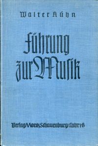 Kühn, Walter: Führung zur Musik. Voraussetzungen und Grundlagen einer einheitlichen völkischen Musikerziehung. Lahr/Baden: Moritz Schauenburg 1939. 8°. 368 S. Leinen (Einband leicht fleckig und abgeblasst; Papier leicht gebräunt; altersgemäss gut erhalten)