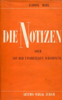 Hohl, Ludwig: Die Notizen oder Von der unvoreiligen Versöhnung, Band 1: I. – VI. Teil. Band 1 (von 2). Zürich: Artemis 1944. 8°. 477 S., Leinen (Schutzumschlag leicht abgegriffen und leichten Randläsuren; leicht lichtrandig; sonst altersgemäss gut erhalten)