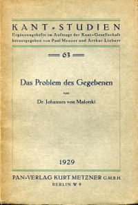 Malottki, Hans von: Das Problem des Gegebenen. Berlin: Pan-Verlag K. Metzner 1929. Gr.-8°. V, 62 S., broschiert (Umschlag mit Gebrauchsspuren; Seiten nicht beschnitten; sonst altersgemäss gut erhalten) (=Kant-Studien : Ergänzungshefte ; 63)