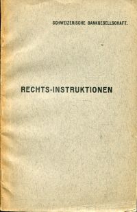 Rechts-Instruktionen. [Zürich:] Schweizerische Bankgesellschaft s. a. 8°. 50 S., broschiert (leicht angebräunt; altersgemäss gut erhalten)