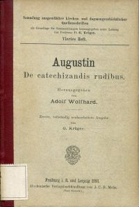 Augustinus, Aurelius: Augustin De catechizandis rudibus. Hrsg. v. Adolf Wolfhard. 2., vollst. neubearb. Ausg. von G. Krüger. Freiburg i. Br.: Mohr 1893. 8°. XV, 76 S., Halbleinen (Bibliotheksexemplar; Stempel auf Titelblatt; sonst altersgemäss gut erhalten) (=Sammlung ausgewählter Kirchen- und dogmengeschichtlicher Quellenschriften, 4)