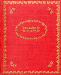 Keysers ewigwährender Kalender. mit ausführlicher Beschreibung aller Monate und ihrer Festtage, dazu alterprobte Wetterregeln ; des weiteren eine Rechentafel zur Bestimmung aller Wochentage in den Jahren 1800 bis 2100 ; Kalendarium zum Eintrag von eigenen Fest- und Gedenktagen ; die zwölf Tierkreiszeichen und ihre Bedeutung für Mann und Frau ; Verzeichnis für Adressen. München: Keyser ca. 1961. 8°. 79 S., zahlreiche Illustrationen, Leinen mit goldgeprägtem Schmuck (gut erhalten)